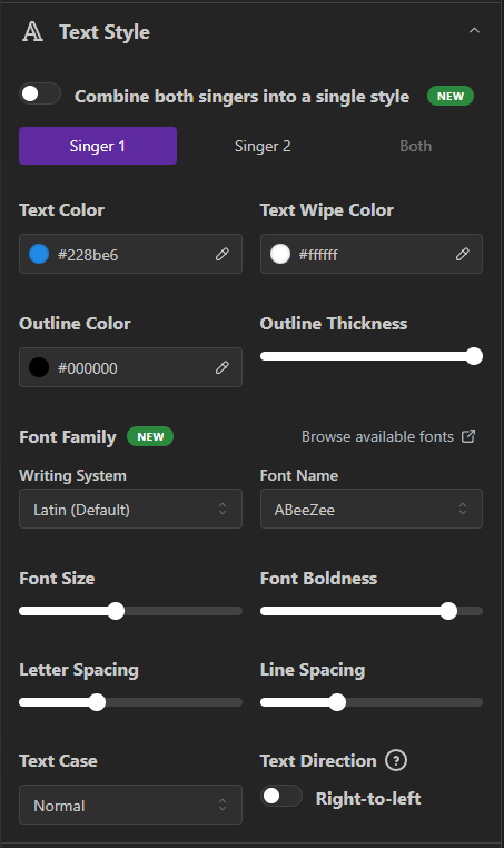 We've all been there—trying to create a duet video and ending up with duplicate lines when both singers are singing the same thing. Our new Duet layout option lets you combine lines sung by both performers into one. Plus, you can specify a third text style just for these combined lines, giving your duets that professional edge!