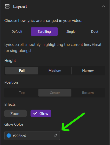 For all of you who love that extra pizzazz in your videos, we've added the ability to choose a Glow color for the Scrolling layout. Because sometimes, basic just doesn't cut it when you're belting out "Let It Go" for the 157th time.