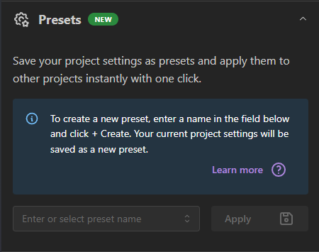 Project Presets: Quick Guide