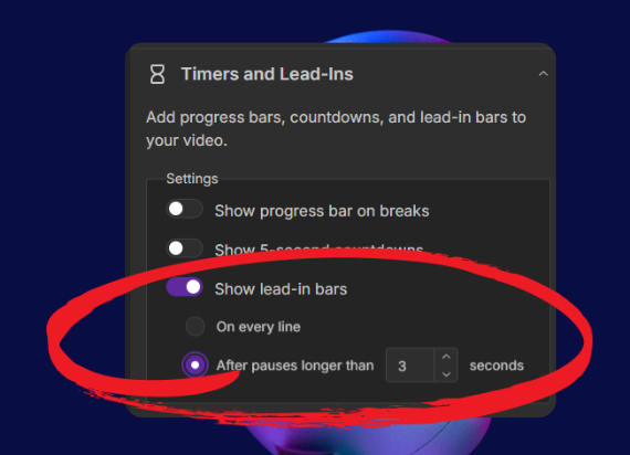Get your song pacing just right. We've added the ability to configure the time gap for lead-in bars. Now you can set exactly how long to wait before a lead-in appears during instrumental breaks, ensuring a more natural flow.